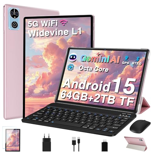 - 🔥💯〖Tablet Gemini AI Android 15〗La tableta cuenta con el sistema operativo Android 15 y un procesador octa-core de 2.0GHz para una experiencia de transmisión eficiente y fluida. Disfruta de configuraciones más personalizadas con widgets, pantalla dividida, control parental y funciones multiusuario. Android 15 y Gemini AI trabajan en conjunto para mejorar tu privacidad y seguridad, brindándote un control total. - 🔥💯〖Wi-Fi 2.4G/5G + Batería de 6000 mAh〗La tableta con teclado es compatible con Wi-Fi dual 5G/2.4G, lo que proporciona una conexión a internet inalámbrica ultrarrápida y fiable para navegar, transmitir y descargar sin interrupciones. Además, con una batería mejorada de 6000 mAh que ofrece hasta 6,5 horas de autonomía, puedes llevarla a reuniones de trabajo o a estudiar sin tener que buscar constantemente un enchufe. - 🔥💯〖30 GB + 64 GB + 2 TB Ampliables〗La tableta Android 15 utiliza tecnología de expansión de RAM, con 8 GB de RAM fija que se pueden ampliar con 22 GB adicionales de memoria virtual mediante la configuración. La tableta Android 15 también cuenta con 64 GB de ROM y admite tarjetas TF de hasta 2 TB, lo que proporciona amplio espacio para juegos y archivos grandes, satisfaciendo así todas tus necesidades de entretenimiento y trabajo. - 🔥💯〖Pantalla IPS de 10 Pulgadas + Widevine L1〗 La tableta de 10 pulgadas cuenta con una pantalla IPS In-cell de 1280 x 800 con una relación de aspecto de 16:10, que ofrece colores vivos e imágenes claras para una experiencia de visualización mejorada. Además, es compatible con Widevine L1, lo que te permite disfrutar de reproducción de video de alta calidad en más de 30 de las principales aplicaciones de video del mundo. - 🔥💯〖Cámara Dual + Bluetooth 5.0 + GPS〗El Bluetooth 5.0 ofrece conectividad de alta fidelidad con periféricos. La potente recepción de señal te garantiza estar conectado en todo momento. Además, la tableta E15 también está equipada con GPS. La cámara trasera de 8 MP captura imágenes y documentos nítidos, mientras que la cámara frontal de 5 MP optimiza las videollamadas con IA. (Nota: Si necesita la función GPS en un área sin cobertura Wi-Fi, descargue mapas sin conexión con antelación). - 🔥💯〖Tableta 2 en 1〗 Tableta 2 en 1 equipada con un teclado bluetooth, mouse inalámbrico, cargador, cable tipo c, adaptador usb hembra a tipo c, película protectora y una funda protectora plegable, lo que le permite transformar sin problemas su tableta de 10 pulgadas en un dispositivo estilo computadora portátil. Su versatilidad la convierte en el dispositivo ideal para quienes necesitan ser productivos en cualquier lugar, ya sea para trabajar, estudiar o jugar.